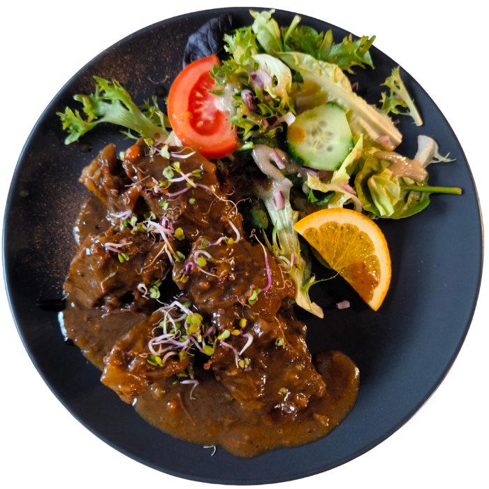 Carbonnade Flamande maison avec une sauce à base de bière Paix Dieu concoctée par notre chef.
