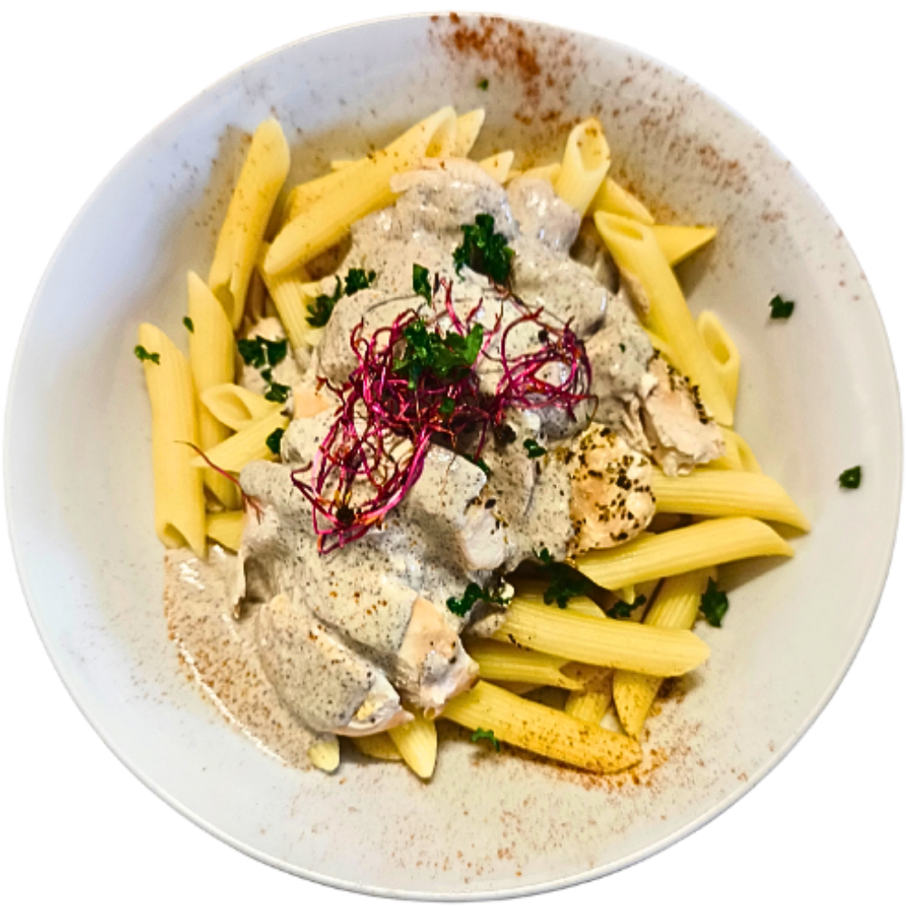 Filet de Poulet Fermier nappé de sa sauce au Maroilles.
